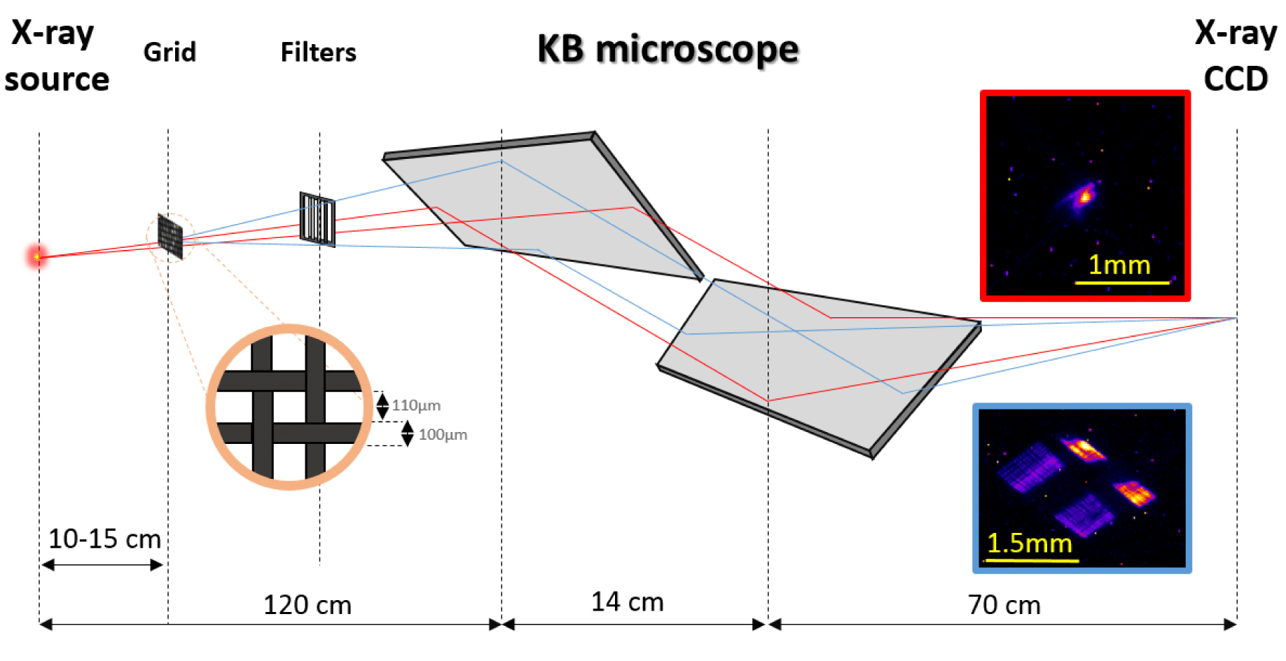 with respect to the target normal and the CCD camera placed in the KB microscope focal plane. This compact X-ray