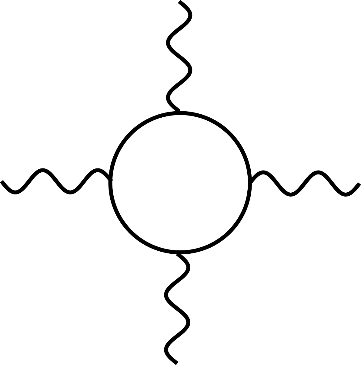 In what follows, we will consider a modification of the 4-photon scattering amplitude at low energy by assuming that two of the photons involved are stemming from a high-intensity laser which is probed by a dynamical photon ‘passing through’. This is visualized in Figure 4.