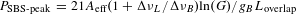$P_{\text{SBS-peak }}=21A_{\text{eff}}(1+\unicode[STIX]{x0394}\unicode[STIX]{x1D708}_{L}/\unicode[STIX]{x0394}\unicode[STIX]{x1D708}_{B})\text{ln}(G)/g_{B}L_{\text{overlap}}$