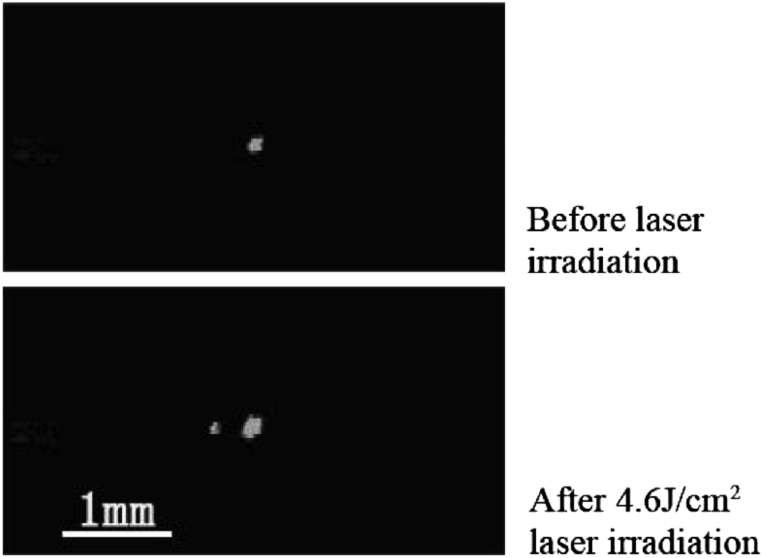 Besides ‘micron size’ scattering defects, the density of ‘sub-micron size’ scattering defects in the CF series samples also decreased significantly compared with the NCF series samples. The density in the former was one or two orders of magnitude lower than in the latter. Online monitoring of damage initiation showed that there were a few damage sites (