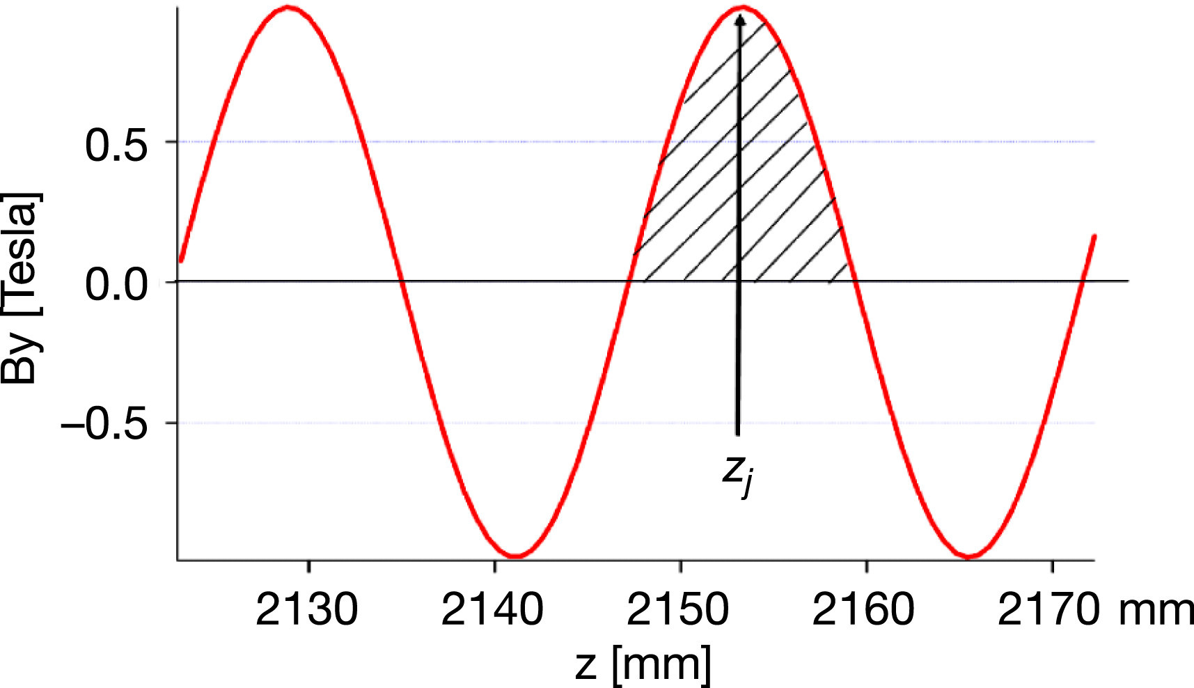 This is a half-period field integral around the $j$th pole of the field profile. Fluctuations of local $K$ from the average describe the error. An illustration of this equation is given in Figure 16.