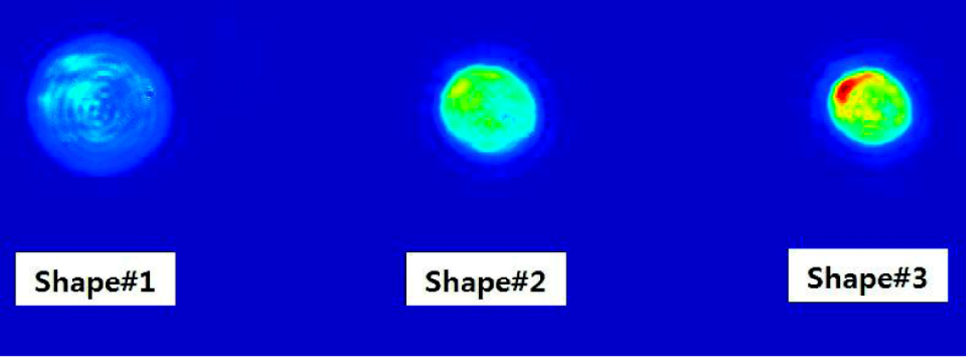 Figure 9. Three different transverse shapes of laser beam: Shape #1, #2 and #3.