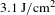 $3.1~\text{J}/\text{cm}^{2}$, the