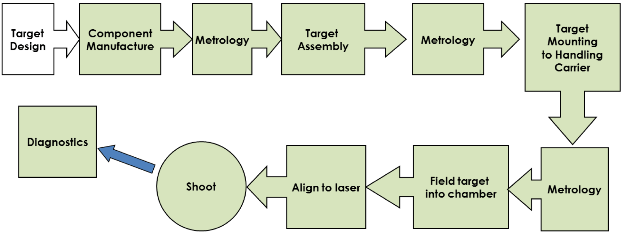 Targets are a key element of every high-power laser experiment and their design is an art that melds broad knowledge of materials properties, materials engineering, and plasma physics. Early involvement of fabricators – ideally before a proposal is submitted – is crucial to ensuring that targets can be fabricated within necessary specifications, are safe for the facility, and will deliver appropriate physics measurements. Target fabrication is a complex process and often requires the combination of different techniques, from material science and chemistry to metrology and engineering. As with diagnostics and optics, target supply requires planning, development and a dedicated budget, especially for high repetition rate facilities requiring huge numbers of targets. Scaling target production, characterization and assembly to large numbers of targets (as required for high repetition rate experiments) will require a high degree of automation. Although some groups are developing automated target processing and applying robotics to target fabrication, these capabilities are not widespread in the community. In general, surprising target fabrication capabilities and competence are available in university groups, material science laboratories and companies traditionally not considered as target suppliers. A better coordination and enhancement of those capabilities, together with the competence of experienced target fabricators, would help in creating a sustainable target supply mechanism for the upcoming facilities. In addition, user facilities should develop very basic production capabilities or, at least, adequate assembly stations, and a target database to keep track of processes and issues. Training of the next generation of target experts should be a priority for facilities and suppliers to ensure the availability of qualified experts and the continuity of laboratory operation.