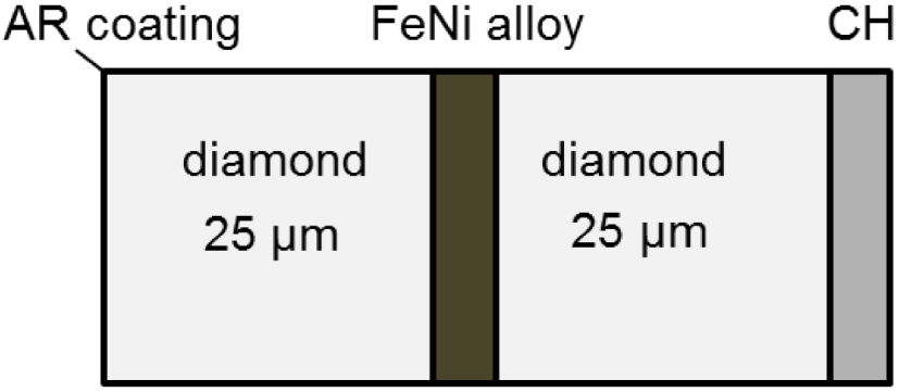 (depending on the coating composition and on the substrate) and growing single crystals can be complicated and expensive. Therefore, targets are often assembled by gluing the above-mentioned layers with ordinary glue, formvar-based glue or UV-cured adhesives. In most cases, different laboratories and companies are involved in the production of a single batch of targets. For example, the production of iron–nickel alloy samples with a double diamond window, an AR coating and an ablator (illustrated in Figure 3) for experiments performed at ESRF was split into four processing phases performed by four different companies: (i) diamond windows production (Applied Diamonds, 6 weeks), (ii) AR deposit (Fichou, 3 weeks), (iii) deposit of the iron–nickel alloy (DEPHIS, 9 weeks) and (iv) polymer coating for ablator (Scitech, 3 weeks). This approach resulted in a long preparation time (5 months only for processing) and in an increase of the sample cost (more than 300 Euro/target). In general, a rough estimate of the cost of targets for shock-compression experiments ranges between