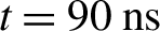 $t = 90\;\mathrm{ns}$. The electric field is finally increased to its maximum peak and kept at a quasi-static value (from