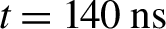 $t\approx 140\;\mathrm{ns}$ a maximum value of