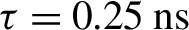 $\tau = 0.25\;\mathrm{ns}$ inflection point with respect to the maximum. The emission is then forced to zero at