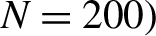 $N = 200)$. The red plot has been obtained by applying a low-pass FIR filter (cut-off frequency