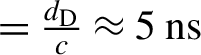 $ = \frac{d_{\mathrm{D}}}{c}\approx 5\;\mathrm{ns}$). From the photo-peak up to
