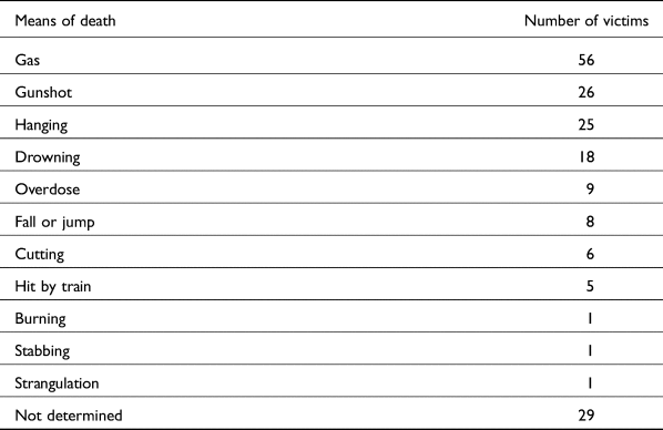 Table 1. Means of death in the ‘crisis suicides’ of 1930–40