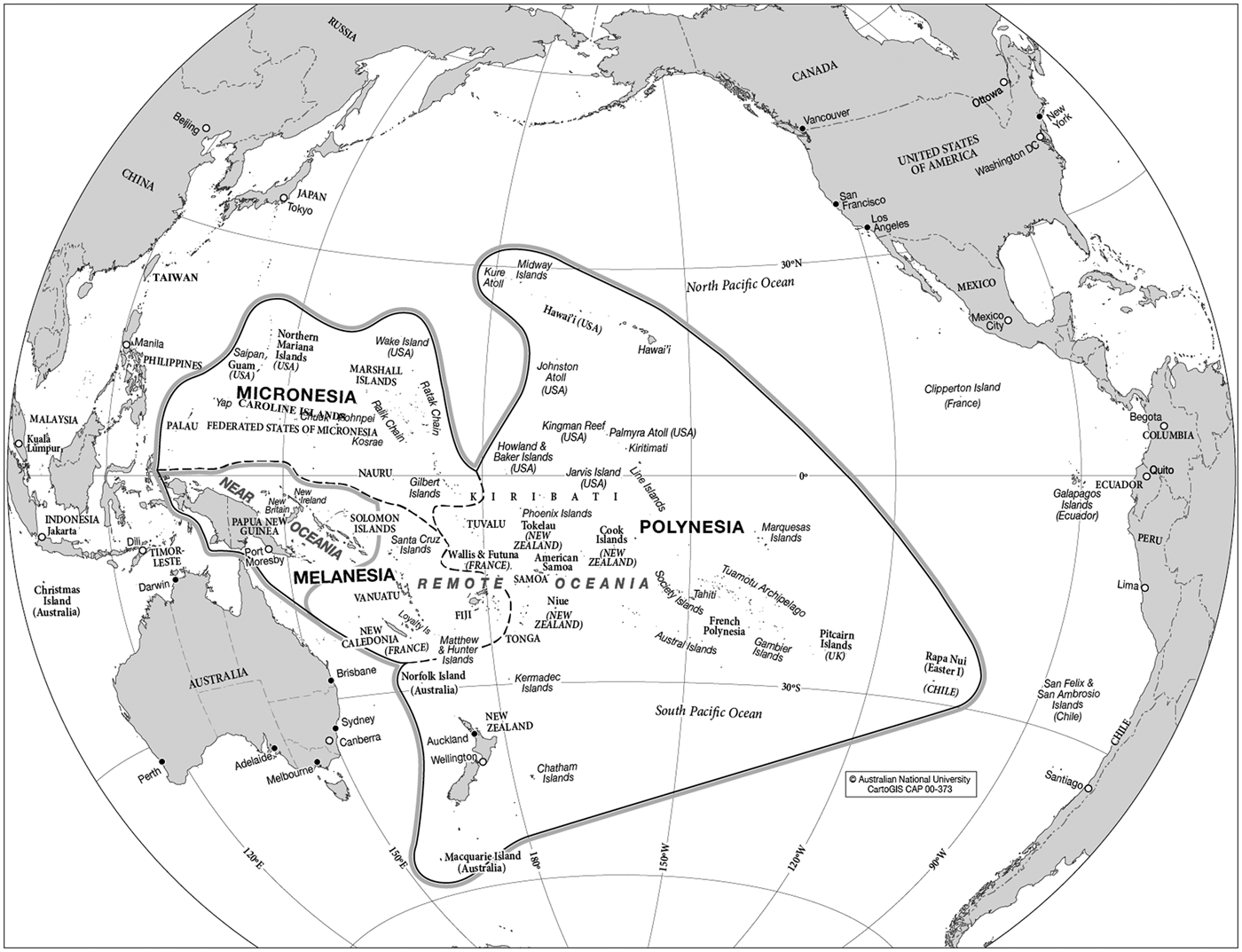 Fig. 1. CartoGIS, ‘Oceania sub-regions’ (2018), CartoGIS Services, ANU College of Asia and the Pacific, Australian National University, Canberra, CAP 00–373, http://asiapacific.anu.edu.au/mapsonline/base-maps/oceania-sub-regions