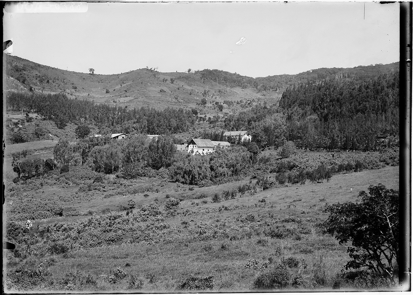 Figure 1. Kwai Farm, West Usambara Mountains, c. 1913. Photograph by Walther Dobbertin. As with Gare Mission, the Kwai experimental farm is covered with exotic tree species. Note the remains of the experimental Eucalyptus grove in the upper right quadrant planted by Emil Eick in the late 1890s. German National Archives index number: Bild105-DOA6388 TIF.