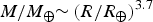 $M/M_ \oplus {\rm \sim} \left( {R/R_ \oplus } \right)^{3.7} $