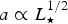 $a \propto L_{\rm \star} ^{1/2} $
