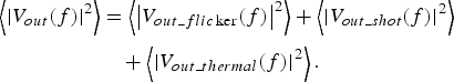 Flicker noise: related to generation-recombination in surface states [Reference Sato12]. It is described by (1), where I is the dc current and the other parameters are device dependent (a f, bf, Kf), usually having a 1/f shape (b f ~ 1).