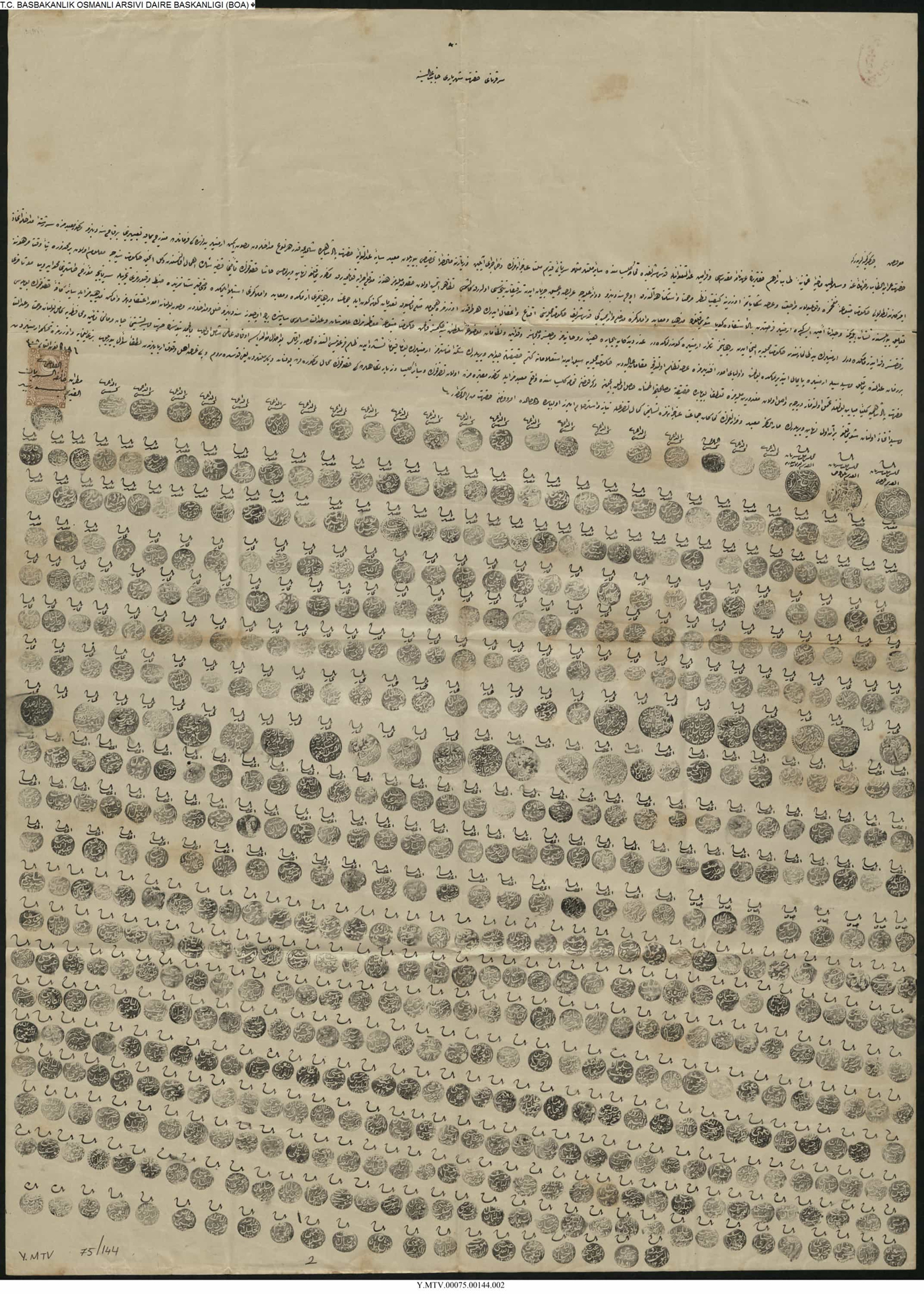 FIGURE 1. A Süryani petition to Istanbul with 688 stamp-signatures from the province of Syria (there are more on the back side). Courtesy of Başbakanlık Osmanlı Arşivi.