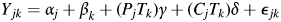 where Y is our outcome of interest (pension or public assistance spending as a share of total expenditures) in commune j for a given year k, α j is the commune fixed effect, β k is a year fixed effect, P j denotes the share of subjects as enumerated at the commune level in 1911, T k indicates whether the commune was observed before or after the outbreak of World War I in 1914, C j is a vector of commune-specific controls, including interactions of all control variables with the subject share and the treatment dummy, and $\epsilon _{jk}$ is an error term. All specifications include clustered robust standard errors at the level of the commune.