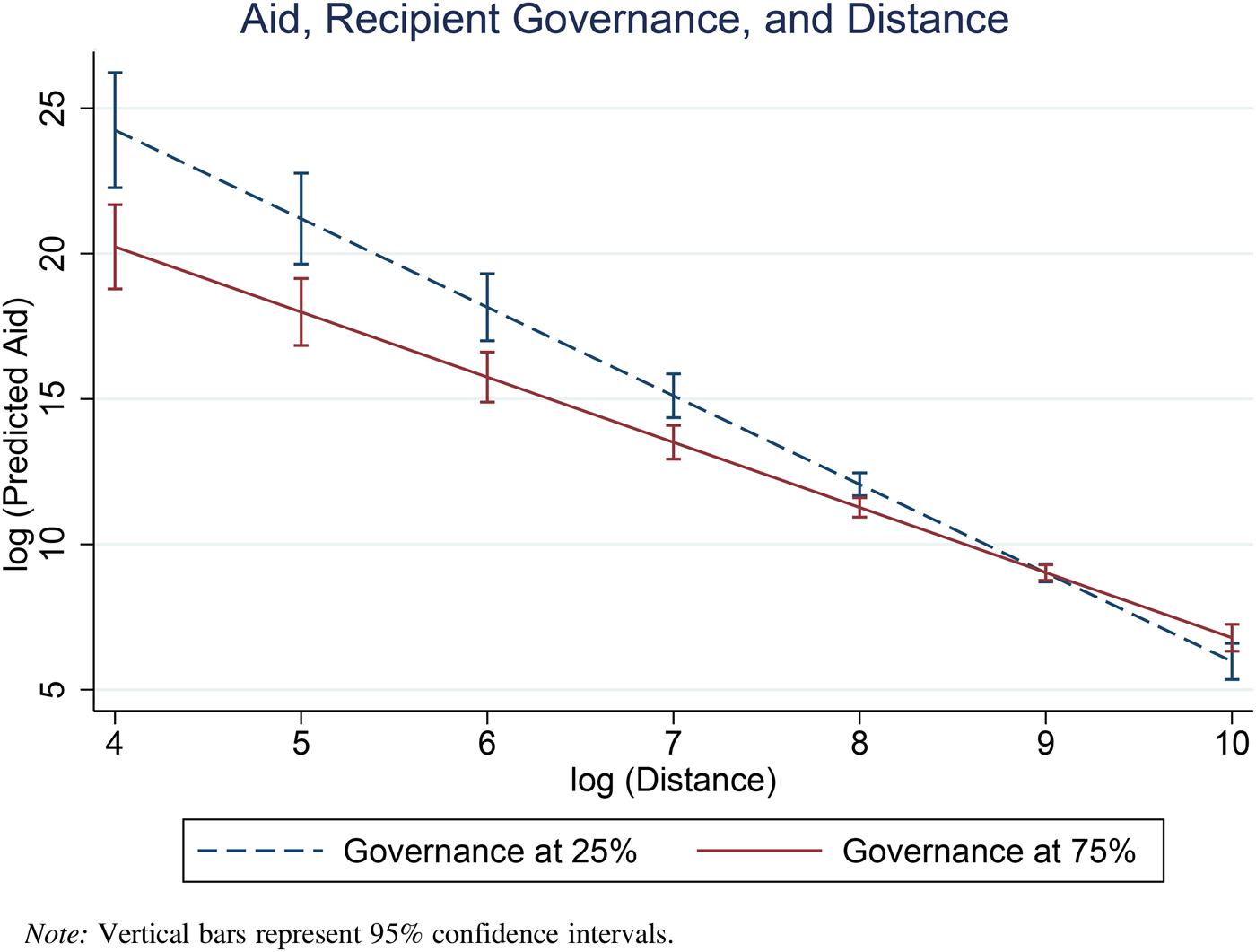 Figure 2. Predicted aid, recipient governance, and distance in the post-2001 period