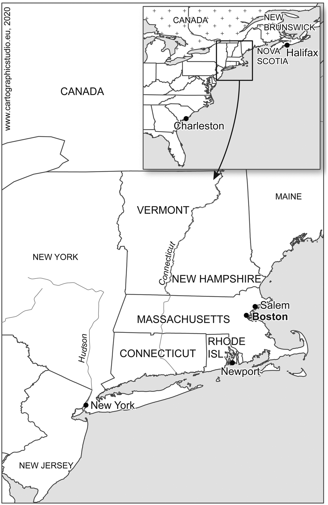 Figure 2. Map of Southern New England, ca. 1777.