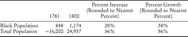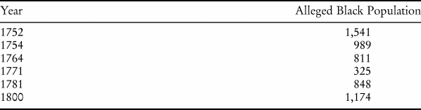 Table 1. Black population of Boston based on official census and tax records, 1752–1800.