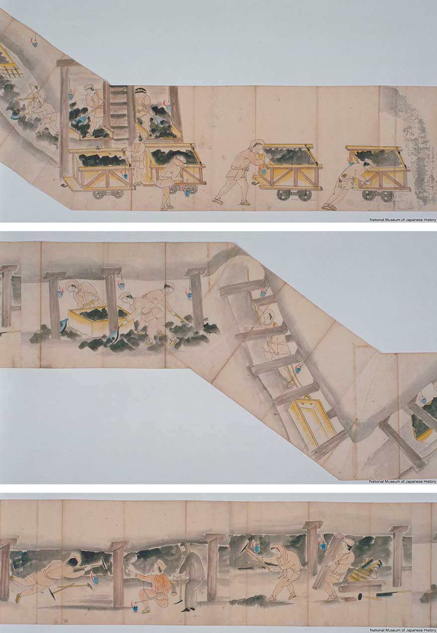 Figure 2 Shūjin rōdō emaki [Illustrated Handscroll of Convict Labour], c.1881–1889. Painted by a convict in Sorachi shūchikan. It depicts the mining process at the Horonai coal mine. Courtesy of the National Museum of Japanese History.