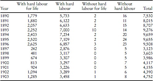 Table 1 The number of convicts sentenced to servitude and transportation.