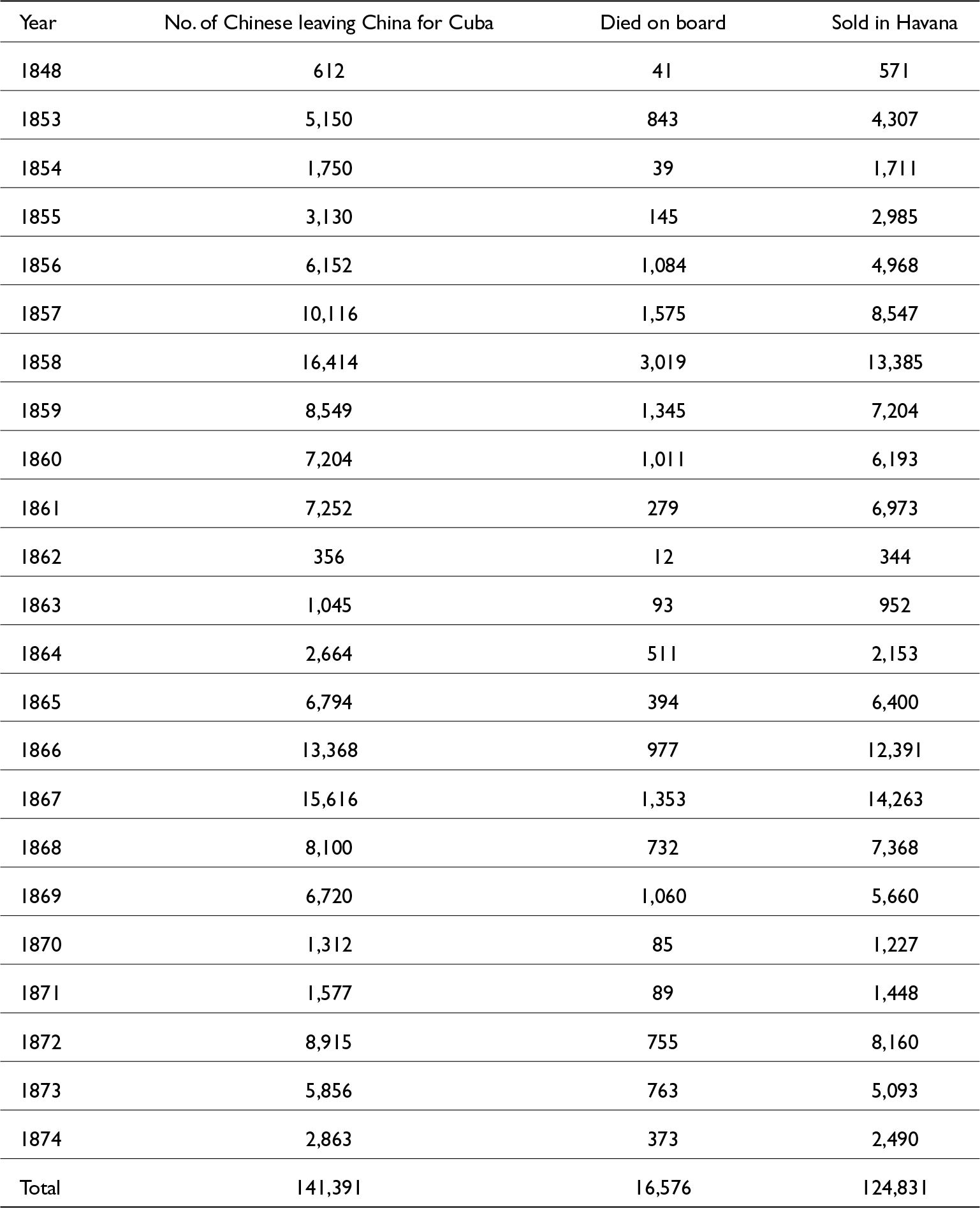 Appendix 1: Annual Immigration of Chinese Labourers to Cuba, 1848–74