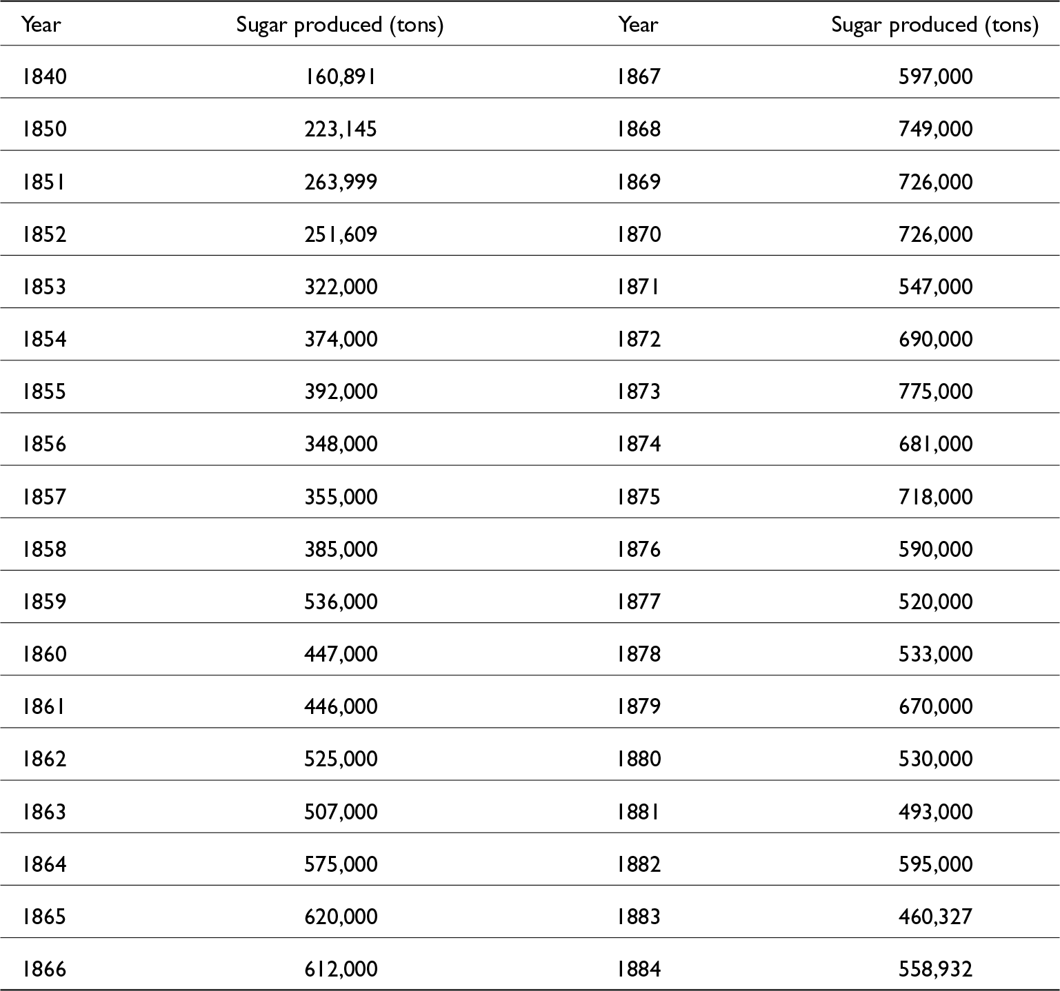 Source: Noël Deerr, History of Sugar, vol. 1 (London: Chapman and Hall, 1949), 131.