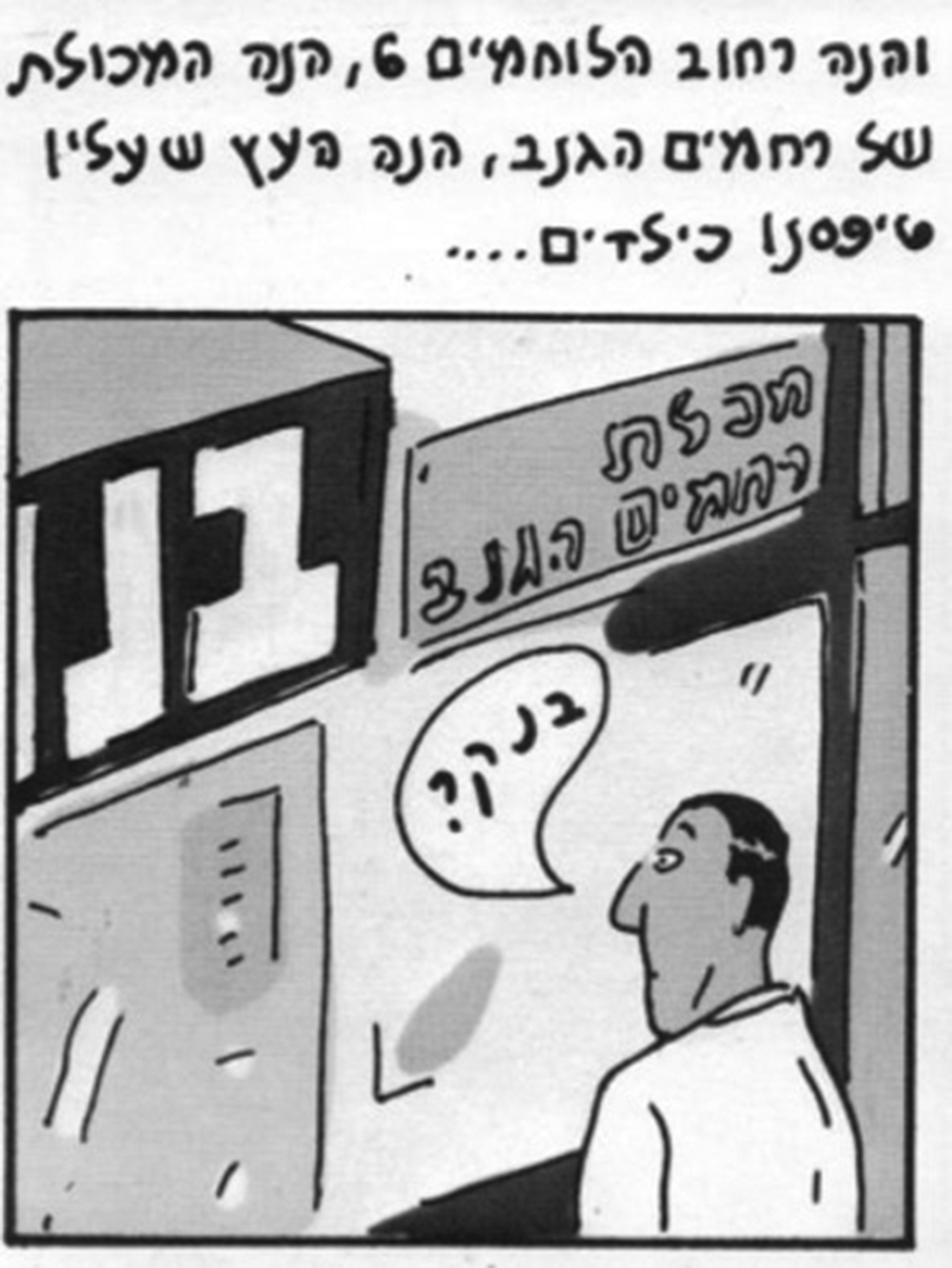 Figure 5. Detail from Dudu Geva, “ABC: Our Security” (“Aleph Bet Bit'honenu”), in Geva, Deserted Thorn (Dardar ba Midbar) (Jerusalem: Adam, 1984).