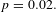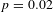 $p=0.02$