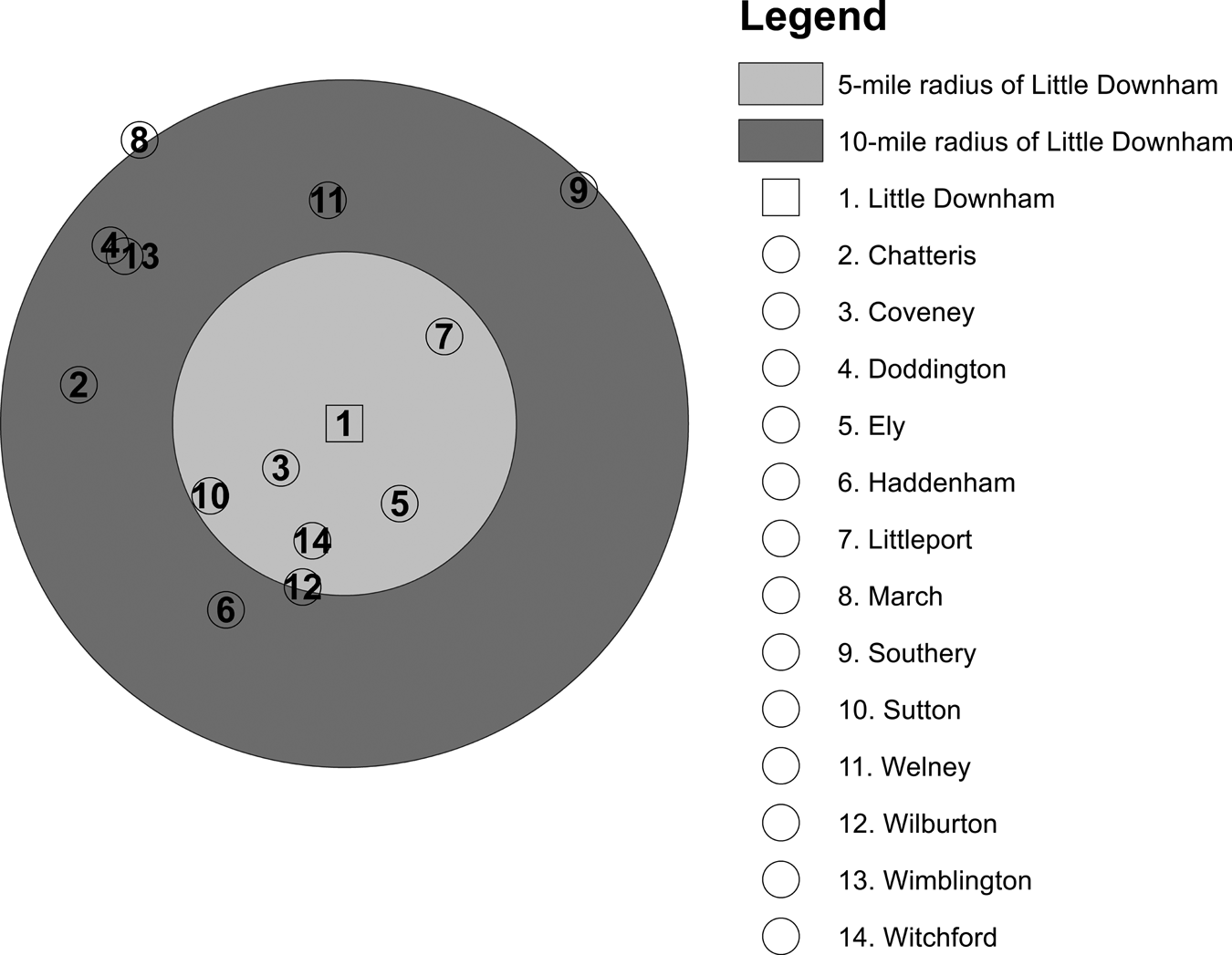 Figure 2 Home Villages of Claimants to Strays at Little Downham's Manor Court. Sources: CUL, EDR, C11/1/2-3, C11/2/4-6.