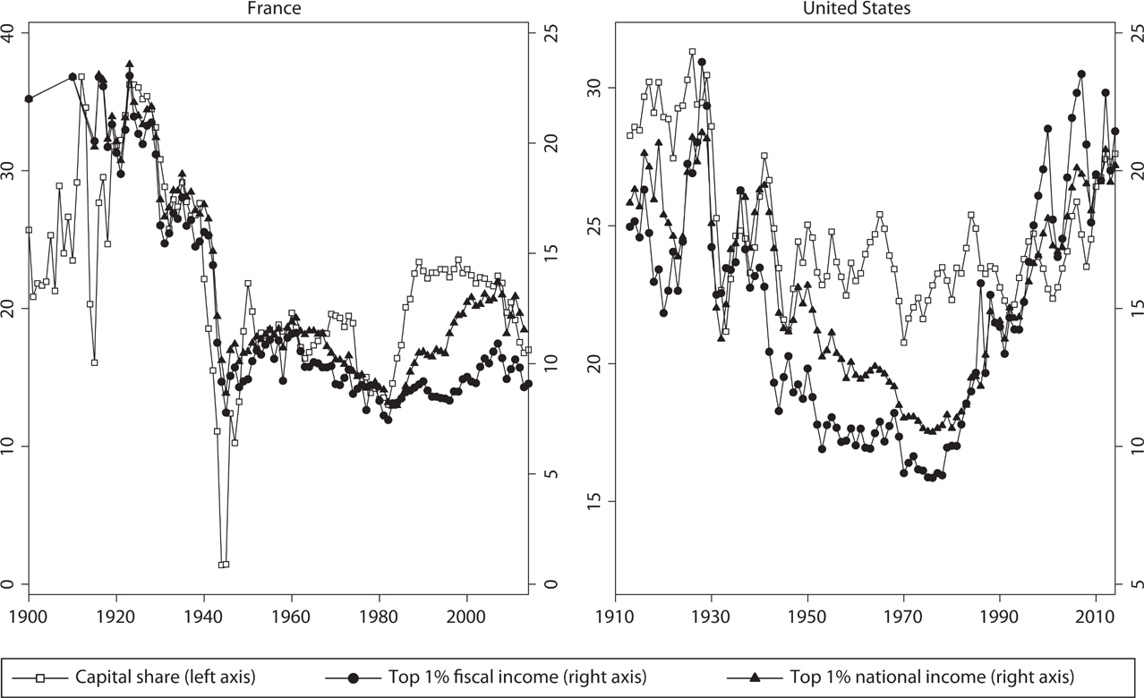Figure 2 Top 1 Percent Income Share and the Share of Capital Income in the Top 1 Percent Share