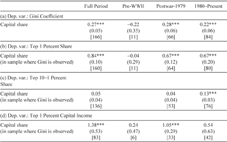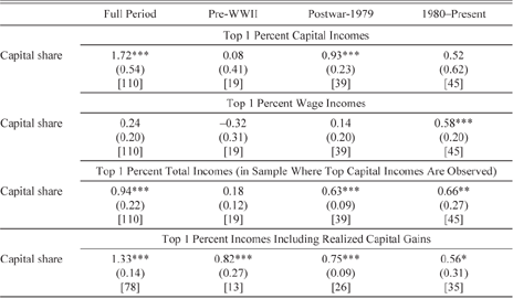Table 2 Capital Shares and Top Income Shares: Basic Relationship