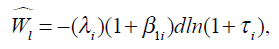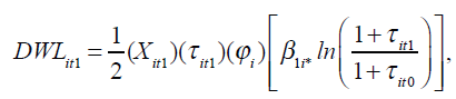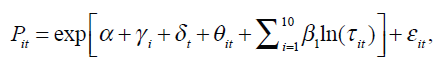 is the country-specific tariff absorption elasticity; and dln(1 + τ