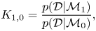 $K_{1,0}$ represents statistical evidence against