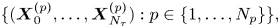 $N_p$ particles at discrete time intervals of length