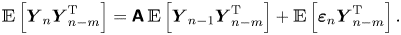 $\boldsymbol {Y}_{n-m}^{\mathrm {T}}$ and taking expectations gives