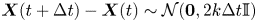 $d$ is the number of spatial dimensions. This implies that particle velocity evolves as a white noise process. The model has one parameter, the diffusivity