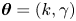 $\boldsymbol {\theta }=(k,\gamma )$. In applications where point estimates of the parameters are required, these can be taken as e.g. the mean or mode of the posterior.