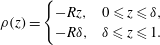$$\begin{eqnarray}\unicode[STIX]{x1D70C}(z)=\left\{\begin{array}{@{}ll@{}}-Rz,\quad & 0\leqslant z\leqslant \unicode[STIX]{x1D6FF},\\ -R\unicode[STIX]{x1D6FF},\quad & \unicode[STIX]{x1D6FF}\leqslant z\leqslant 1.\end{array}\right.\end{eqnarray}$$