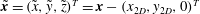 $\tilde{\boldsymbol{x}}=(\tilde{x},{\tilde{y}},\tilde{z})^{T}=\boldsymbol{x}-(x_{2D},y_{2D},0)^{T}$