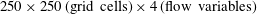 $250\times 250\;\text{(grid cells)}\times 4\;\text{(flow variables)}$