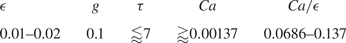 ${\tilde {\tau }\tilde {H}/\tilde {L}^{2}=\tau \epsilon ^{2}\tilde {\rho }\tilde {U}^{2}}$ is expressed by the augmented capillary number