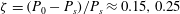 $\unicode[STIX]{x1D701}=(P_{0}-P_{s})/P_{s}\approx 0.15,0.25$