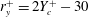 $r_{y}^{+}\sim 2Y_{c}^{+}-30$