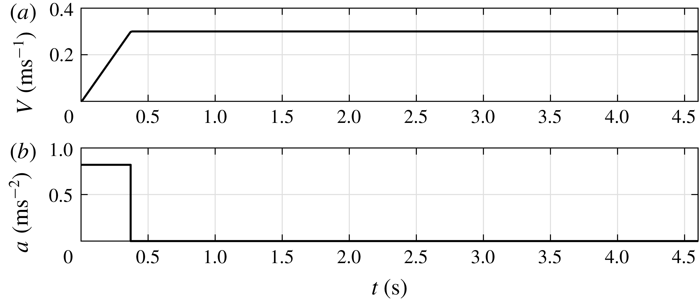 is essentially the number of plate heights travelled by the plate. A similar notation was adopted by Xu & Nitsche (Reference Xu and Nitsche2015) who reported that it was more suitable to compare results with different accelerations at the same distances travelled than identical times travelled. Gharib, Rambod & Shariff (Reference Gharib, Rambod and Shariff1998) called this dimensionless time the formation time where it proved to be a universal time scale for the generation of a vortex ring by a piston. Also Ringuette, Milano & Gharib (Reference Ringuette, Milano and Gharib2007) used the formation time