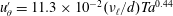$u_{\unicode[STIX]{x1D703}}^{\prime }=11.3\times 10^{-2}(\unicode[STIX]{x1D708}_{\ell }/d)Ta^{0.44}$