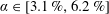 $\unicode[STIX]{x1D6FC}\in [3.1\,\%,6.2\,\%]$