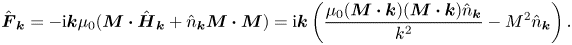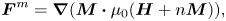 ${\boldsymbol {F}} = \mu _0\,\boldsymbol{\nabla } [\boldsymbol{M} \boldsymbol{\cdot } (\boldsymbol{H} + n \boldsymbol{M})]$, where